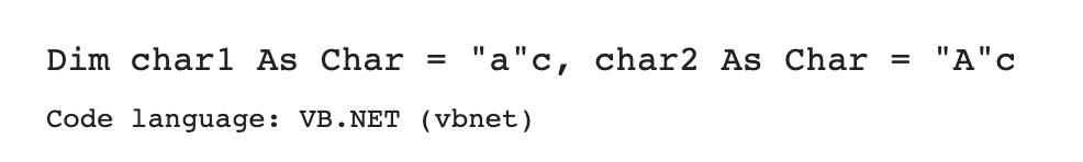 Dim char1, char2 As Char