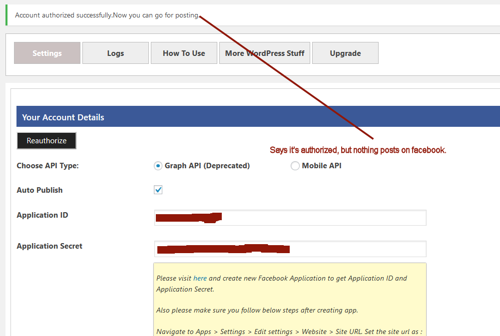 When I create a post on my site the fauto post isn’t posting anything to facebook, not even my regular profile page.