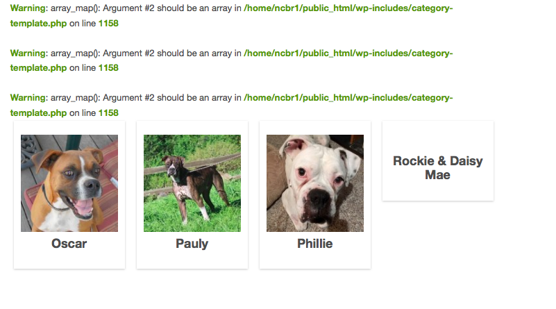 Warning: array_map(): Argument #2 should be an array in /home/ncbr1/public_html/wp-includes/category-template.php on line 1158Here is a partial screen shot: http://nrbailey.com/WP4-4_screenshot.png