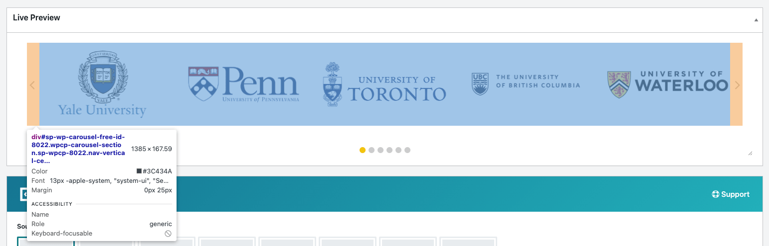 var_dump($custom_posts);How come all the default styles are not being applied to the carousel via Divi? Also the workaround is missing padding on the container as well:
